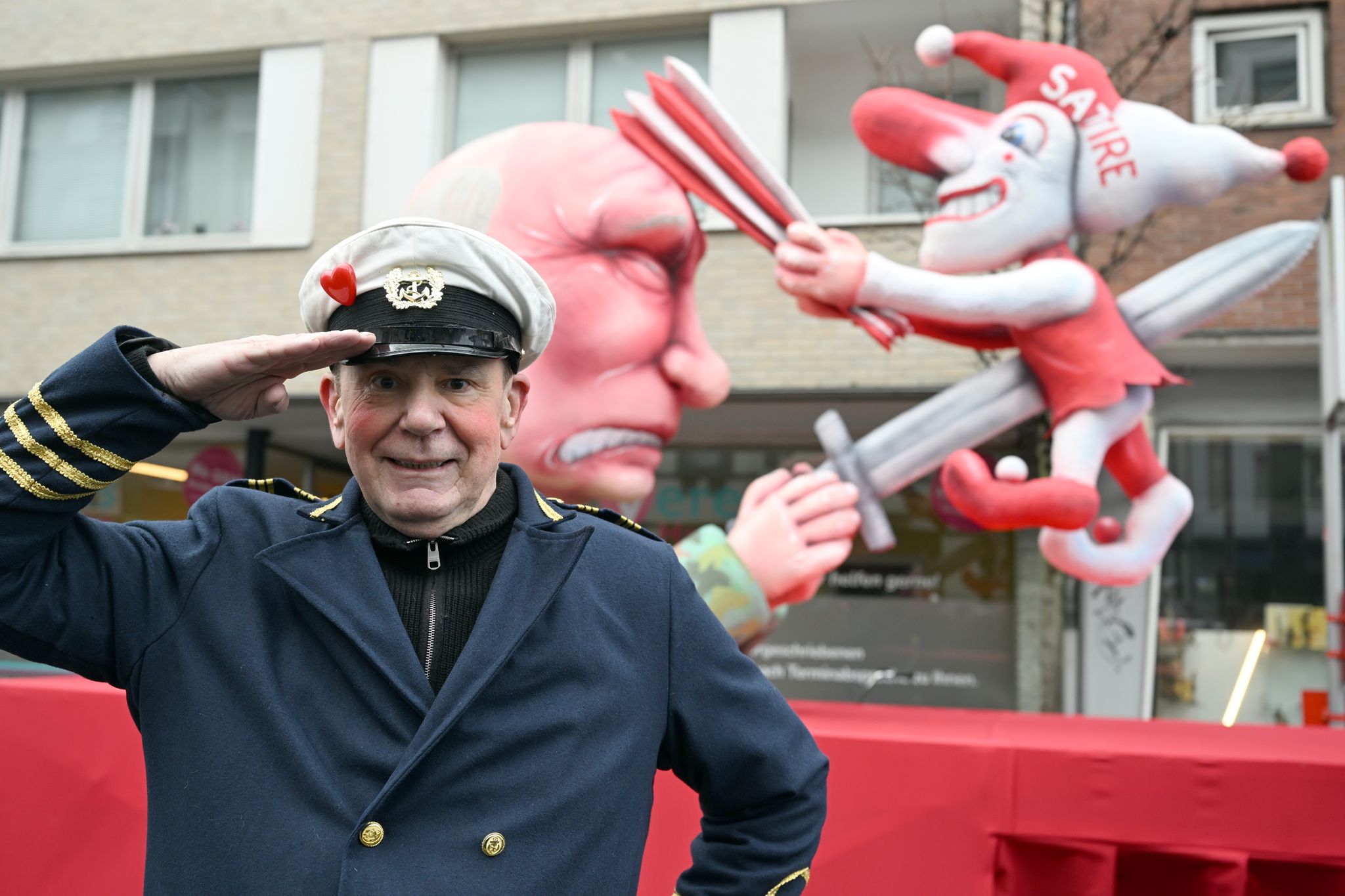 Немецкий скульптор Жак Тилли сатирически изобразил своё собственное преследование со стороны российского правосудия, создав карнавальную платформу для шествия в «Розовый понедельник» в Дюсс...